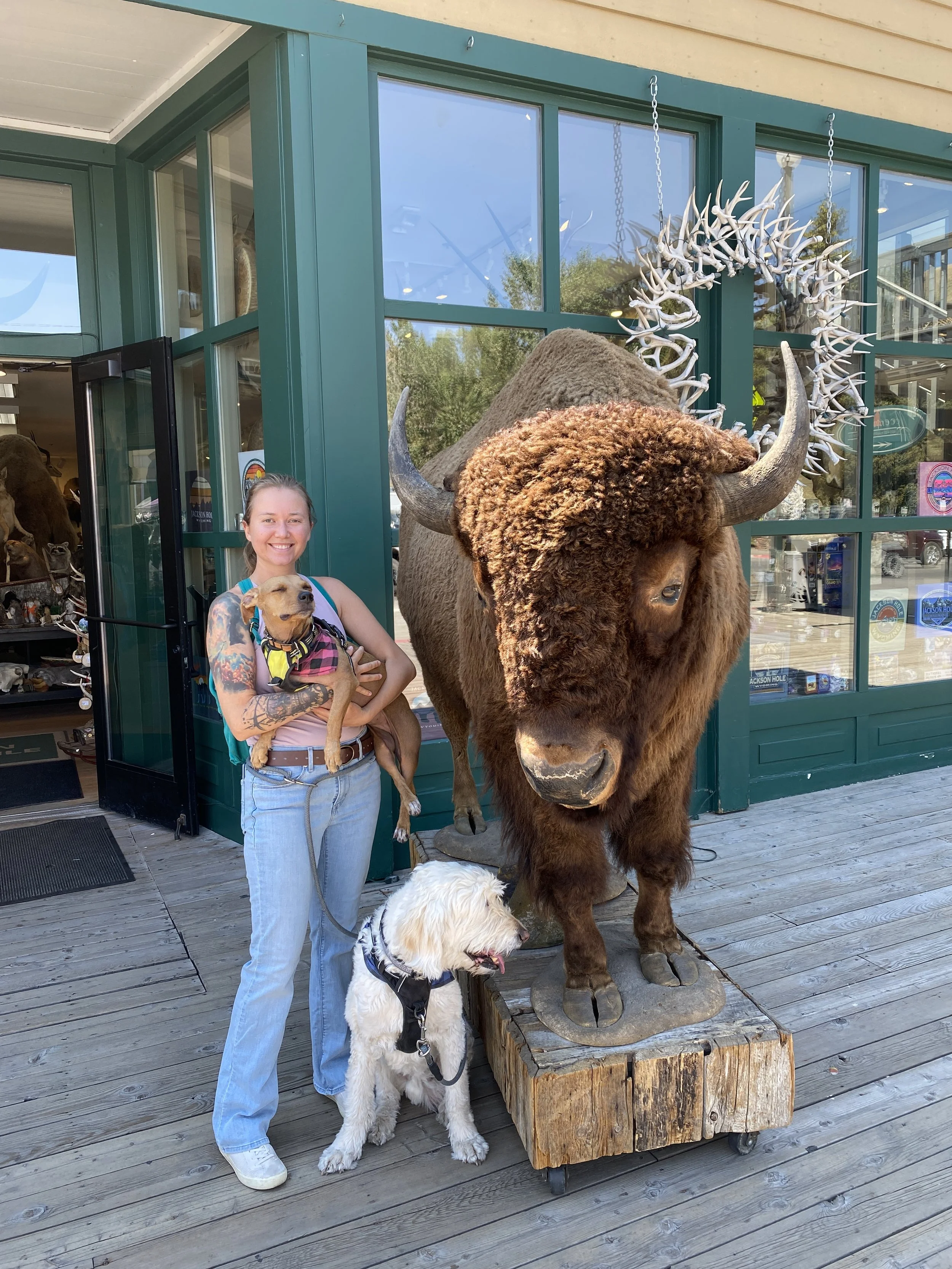 Pets must be leashed at all times and no longer than 6 feet in length. They are only allowed in campgrounds, picnic areas, parking lots, and along park roads. They aren’t allowed on any trails inside Grand Teton National Park.